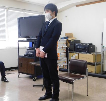 <マスク着用のまま自己紹介の新人張さん